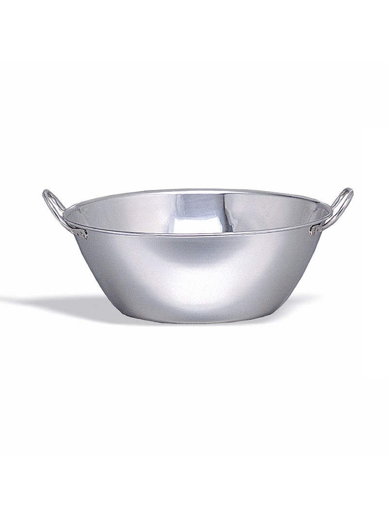 Calderos de acero inoxidable de diferentes tamaños, especialmente pensados para la repostería, puesto que sus dimensiones y geometría los hace idóneos para mezclar, batir, emulsionar…