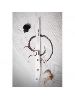 De hoja delgada, con curva característica y filo liso. Perfecto para desprender los huesos de la carne. El mango de cada cuchillo identifica el tipo de alimento en el que se va a emplear, mediante un uso de tapones de polipropileno de distintos colores. Diseñados con el fin de tener un perfecto control higiénico-sanitario. Cuchillo deshuesador de 130mm de hoja fabricada con exclusivo acero inoxidable NITRUM, otorgando un corte profesional y de larga durabilidad. Mango con núcleo duro de polipropileno recubierto con un caucho especialmente cómodo de usar, totalmente ergonómico y antideslizante. Resistente a la deformación por temperaturas extremas.